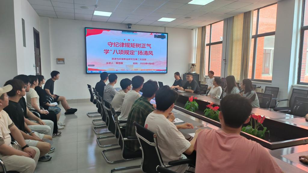 为深入贯彻落实全面从严治党要求,进一步强化党员纪律规矩意识,6月6日,国产视频 资源与环境专业研究生第二党支部组织开展“守纪律规矩树正气,学‘八项规定’扬清风”主题党日活动,通过溯精神之源、悟规定要义、鸣纪法警钟、砺担当作为四个环节,推动中央八项规定精神入脑入心。 活动伊始,支部书记韩雪丽带领全体党员深入剖析中央八项规定出台的政治背景和现实意义,并通过逐条解读中央八项规定内容,引导党员们对改进调查...