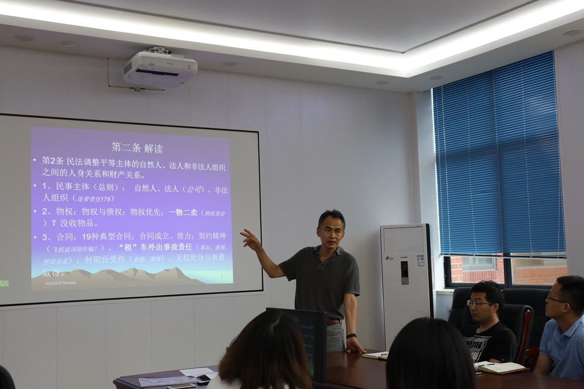 2020年6月29日下午,国产视频 在J6第一会议室开展党委理论中心组第9次学习活动。文法国产视频 李光禄教授受邀为国产视频 讲解民法典,院领导班子、系主任和各党支部书记参加。会上,党委书记秦昌盛针对法律在日常工作的重要...