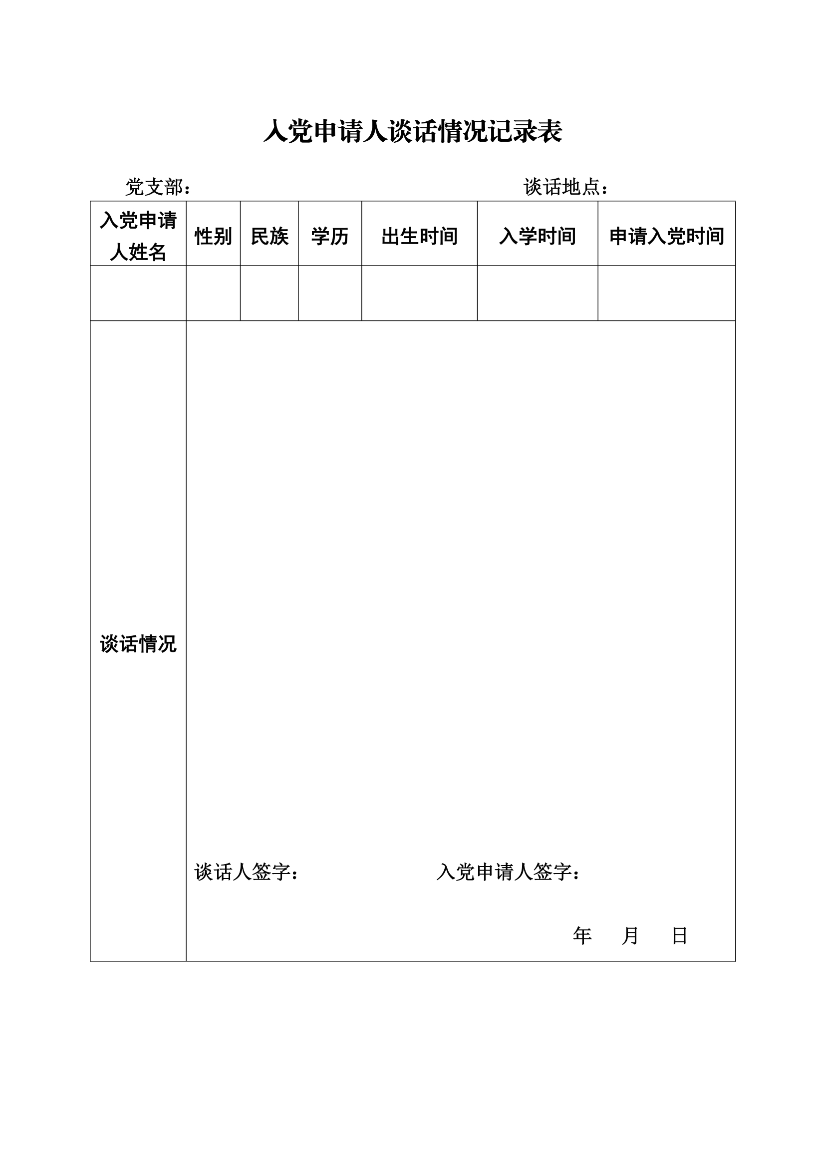 入党申请人谈话情况记录表样例: