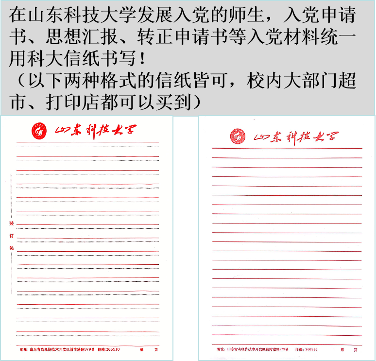发展入党的同学,要求所有入党材料(含入党申请书、思想汇报、转正申请书等)均用科大信笺纸书写并装订。