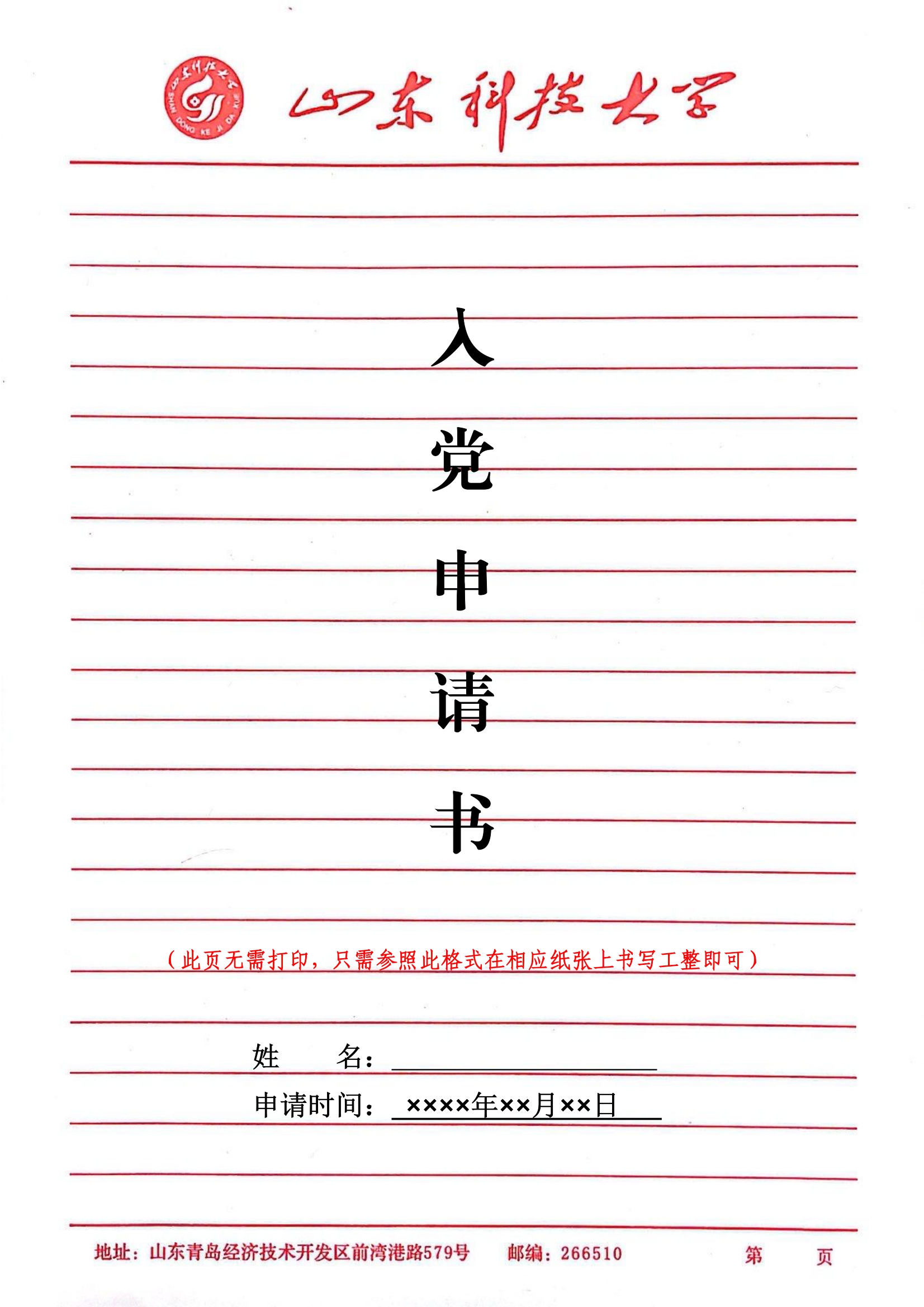 4.入党申请书要写得朴实、庄重,符合个人真实情况,不要刻意追求华丽的词句,更不得随意网上抄袭复制。