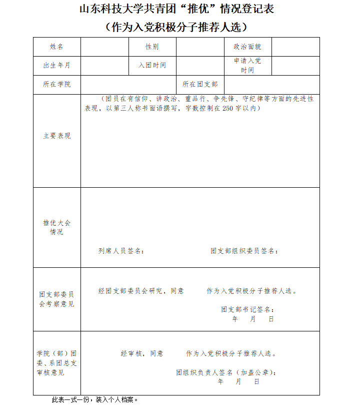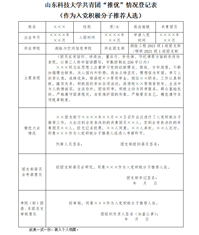 国产视频 共青团“推优”情况登记表(作为入党积极分子推荐人选)撰写指南: