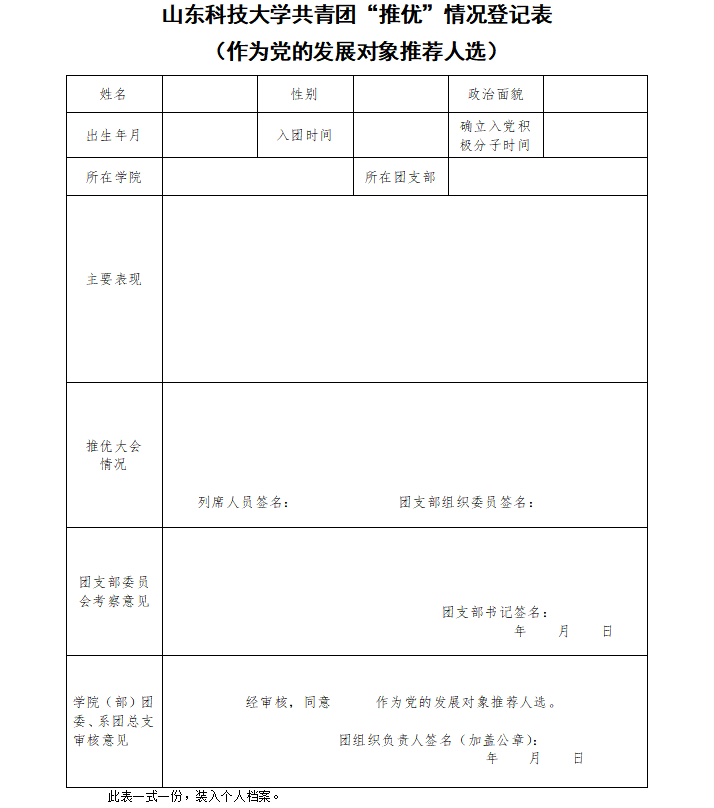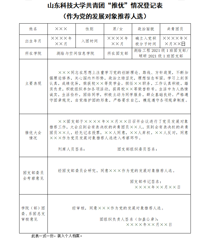 国产视频 共青团“推优”情况登记表(作为党的发展对象推荐人选)样例: