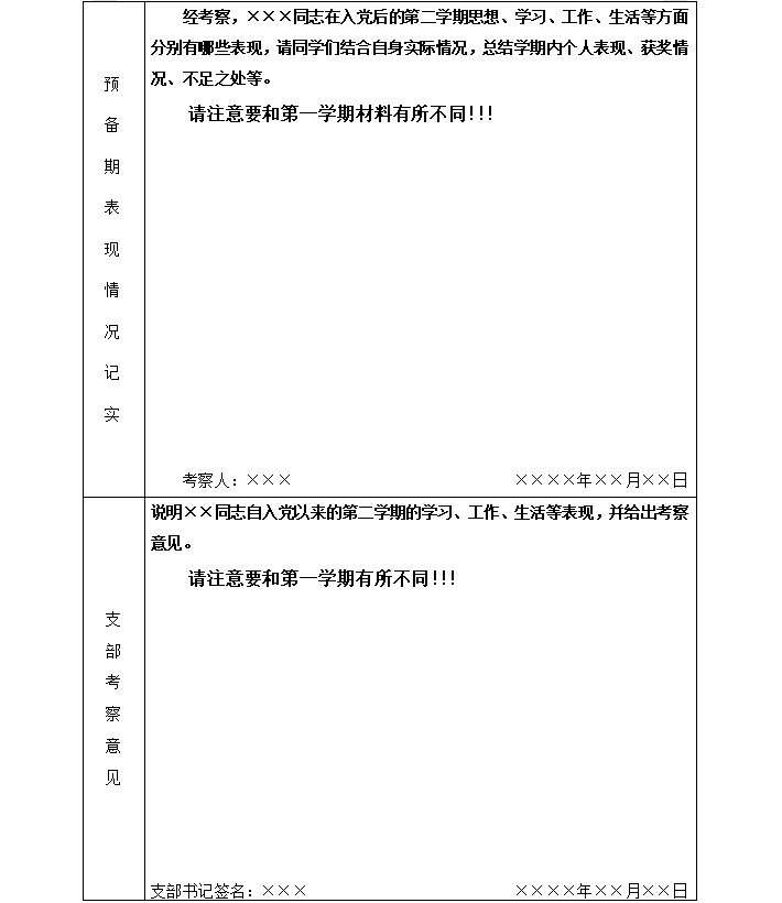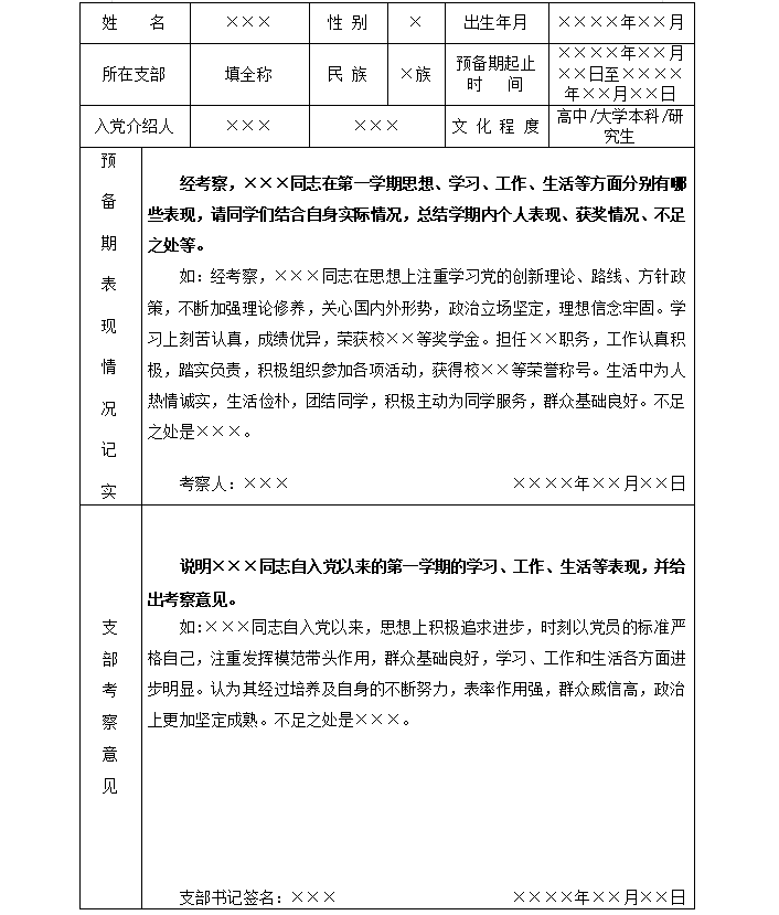 预备党员考察表撰写指南: