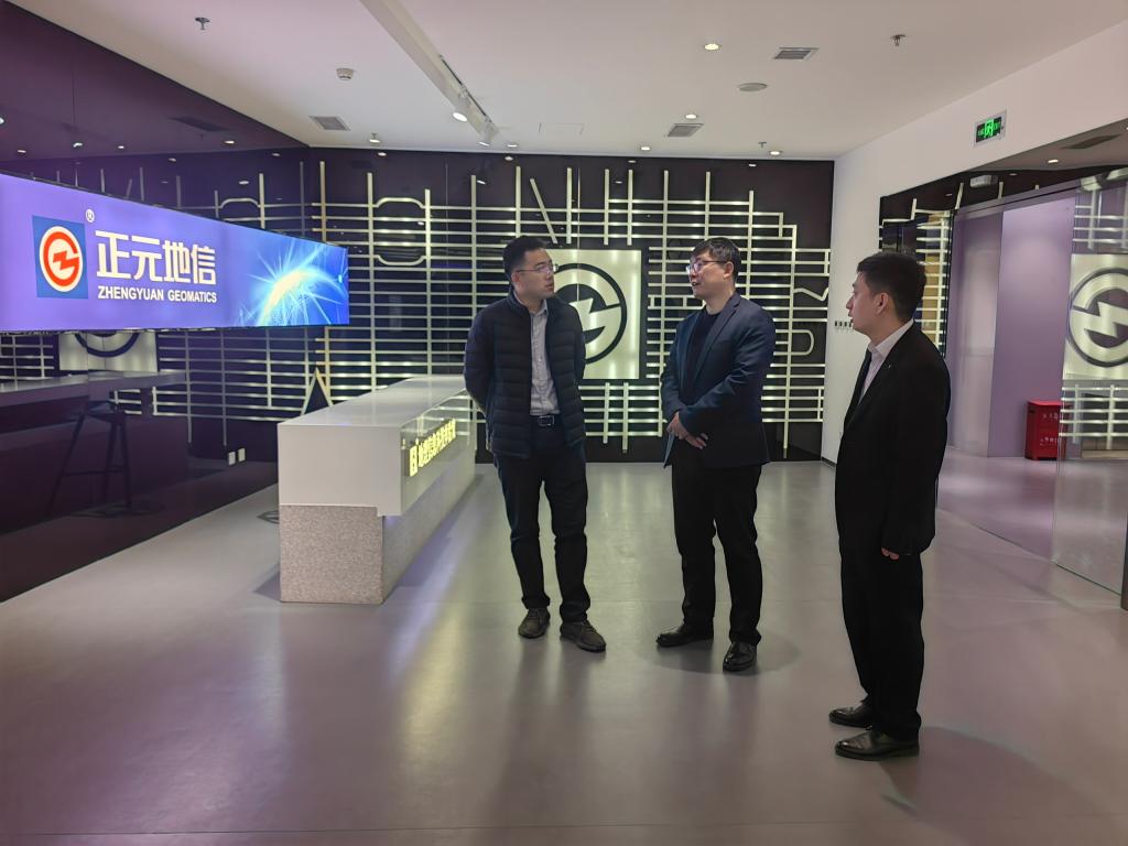 党委书记秦昌盛一行赴正元地理信息集团有限公司开展校企合作洽谈及访企拓岗活动。正元智慧城市公司副总经理陶为翔、生产经营中心经理吴超、综合办公室主任凌冰,正元集团科技中心课题组产品经理马俊瑞热情接待了秦昌盛一行。