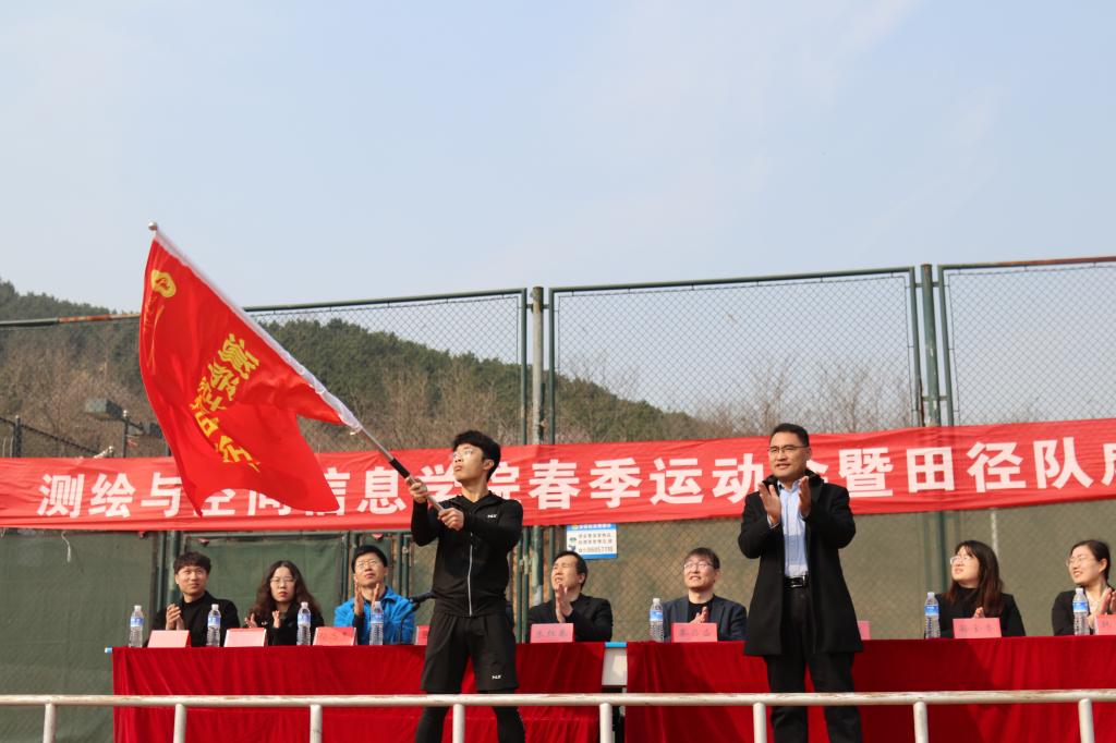 学院党委副书记兼副院长 吴昊 为田径队授旗