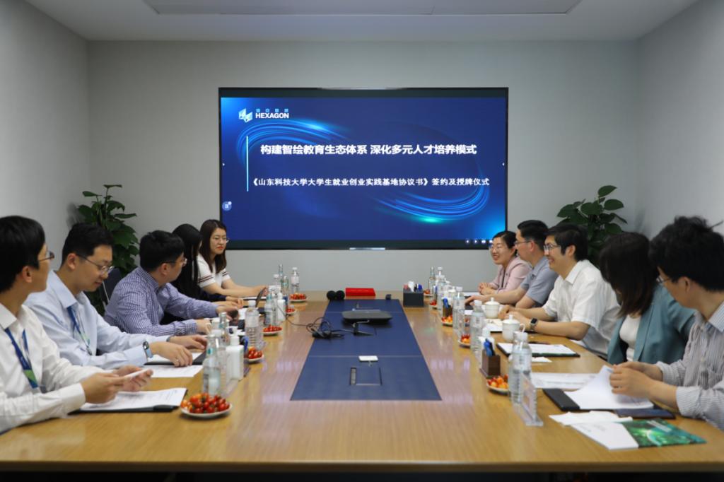 副院长刘尚国、学工办主任(团委书记)孙金香、测绘系党支部书记刘如飞、辅导员孙志勇、韩雪丽一行5人赴海克斯康(青岛)公司开展“访企拓岗”及交流活动,并举行了“国产视频