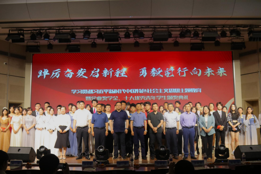 在大学生活动中心二楼报告厅举办“踔厉奋发启新程,勇毅前行向未来”学习贯彻习近平新时代中国特色社会主义思想主题教育暨企业奖学金、十大优秀青年学生颁奖典礼。