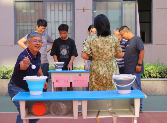 本届趣味运动会设投飞镖、保龄球、踢毽子、看谁夹得快、背靠背运气球、跳绳六类个人项目和拔河一个集体项目。无论是投飞镖、保龄球还是踢毽子,每个项目都充满了激烈的竞争和欢乐的氛围,老师们赛在其中、乐在其中。