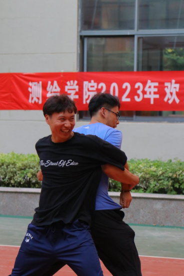 在拔河比赛中,比赛还未开始,老师们便已经压低重心,蓄势待发,摆好了“一拔头筹”的姿势。随着裁判员的一声令下,老师们立刻咬紧牙关、向后倾倒,双手紧握长绳,铆足了劲拼命往后拉。对阵双方势均力敌,互不相让,表现出强大的向心力和凝聚力。在场师生的加油声、呐喊声响彻赛场,竞技与友谊齐飞,热烈与欢笑共舞。