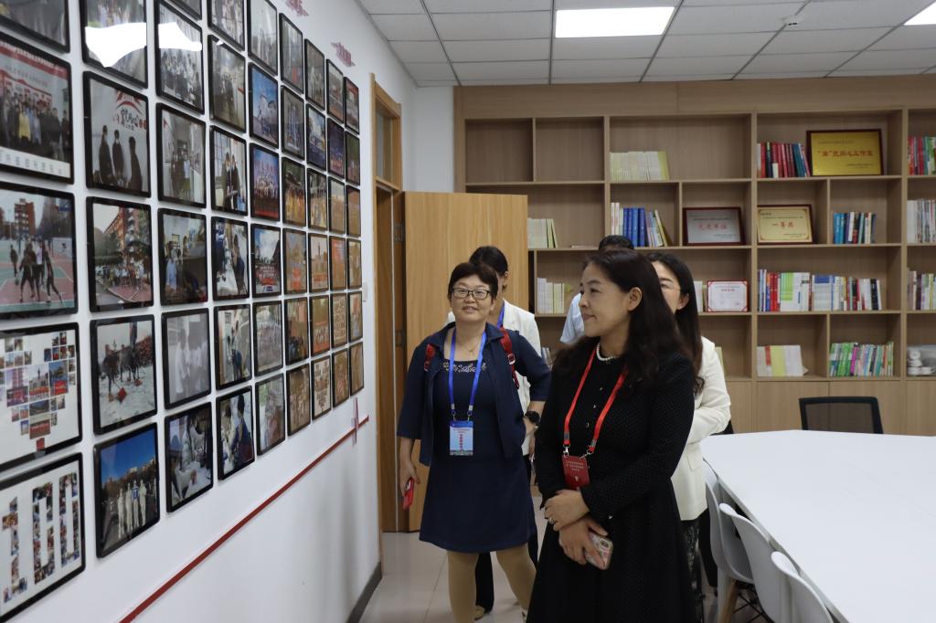 党委副书记兼副院长吴昊、学工办主任(团委书记)孙金香向专家组一行介绍了学院一站式社区建设,带领参观了学生宿舍、公寓文化长廊、国旗护卫队办公室等,讲解了学院学团工作发展变化。