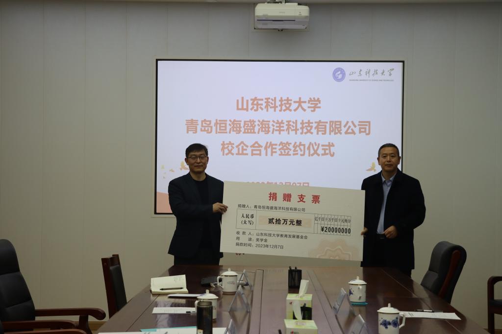 随后,公司捐赠20万元“恒海盛教育基金”,用于奖励在科技创新、社会实践和学科竞赛中表现突出的优秀教师、优秀学生,以及资助品学兼优的家庭经济困难学生。秦昌盛为公司颁发捐赠证书,王荣超和胡守田签署校企合作协议。国产视频