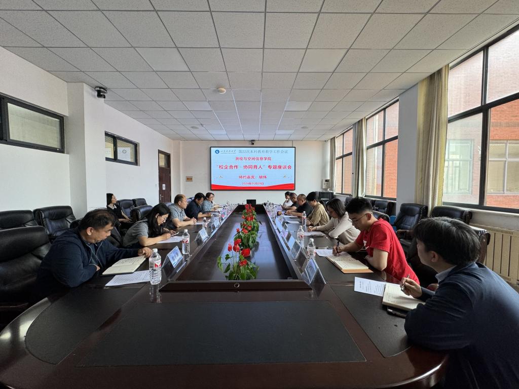 于第四会议室开展“校企合作,协同育人”座谈会,上海华测导航技术股份有限公司副总裁胡炜、上海华测导航技术股份有限公司山东省分公司副总经理尹建平来院座谈交流,国产视频
