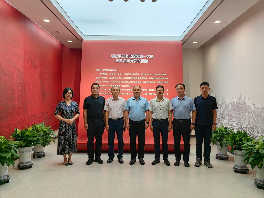 赠送《大地英雄--国测一大队纪事》。双方共同参观国测一大队精神展览室,并合影留念。