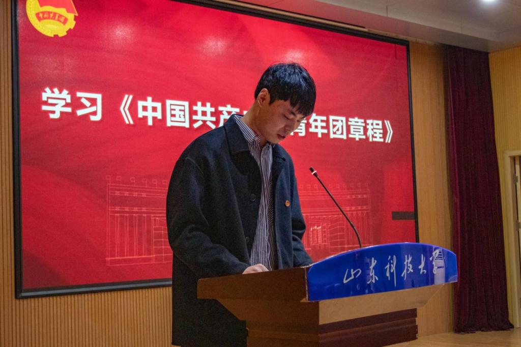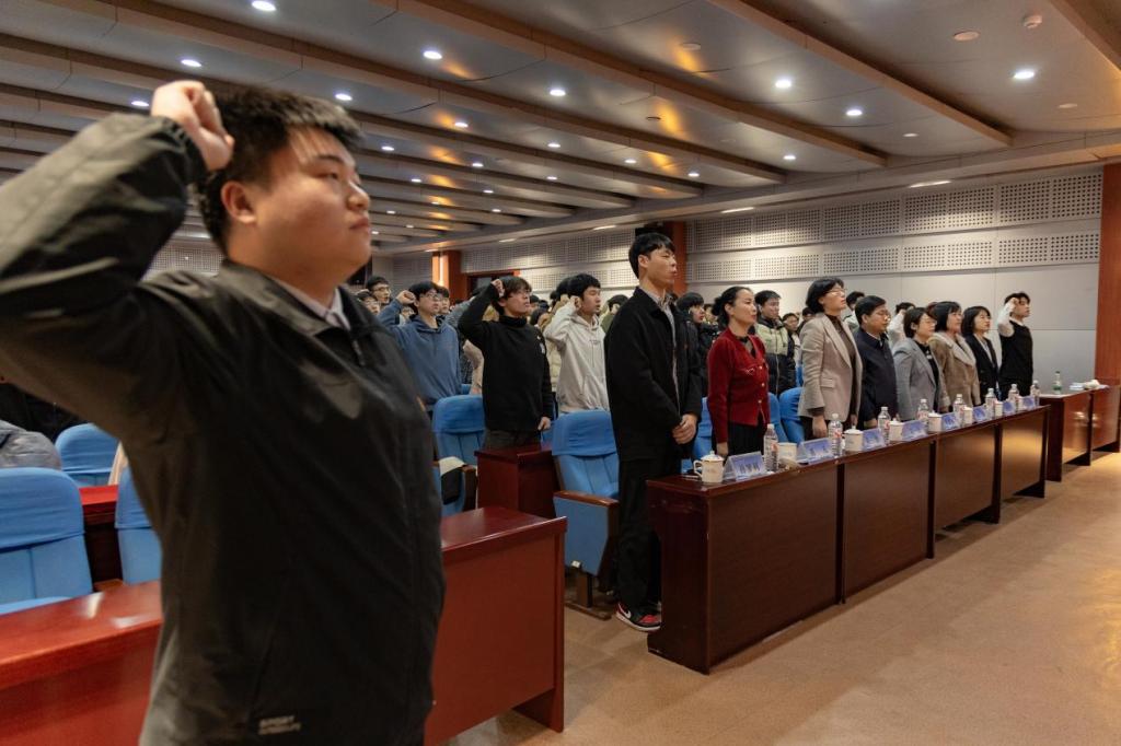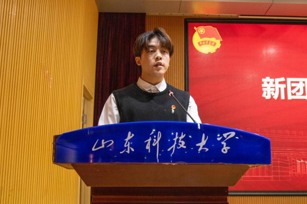 辅导员孙梦柯宣读《中国共产主义青年团章程》中有关团员义务和权利的条款。耿倩宣读新发展团员名单,并向新团员代表颁发团员证。易凡、马韶霞为新发展团员代表佩戴团徽。38名新团员在领誓人王宏力的带领下,面向团旗庄严宣誓,活动现场全体团员重温入团誓词,他们用最洪亮的声音喊出自己的名字,表达出自己勇担时代重任的决心。新团员代表付宇轩和优秀团员代表王奕苏分别发言。随后,材料国产视频
