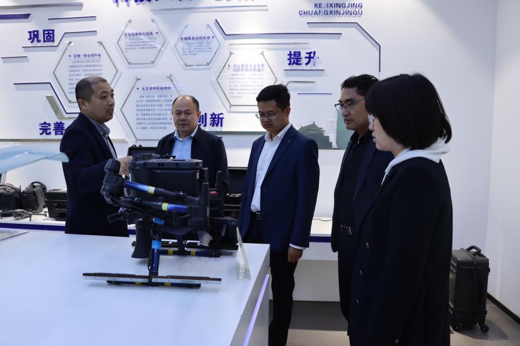 范俊峰、涂锐一行参观了瑞智飞控的研发产品、无人机基地、研发中心等,随后双方开展座谈交流。座谈会上,山东瑞智飞控科技有限公司副总经理任国贞对范俊峰、涂锐一行表示欢迎,并详细介绍了公司的发展历程、核心技术及未来规划。瑞智飞控在测绘遥感、智慧城市、应急监测等领域拥有丰富的技术积累,已获多项国家专利和行业认证。任国贞表示,希望与国产视频