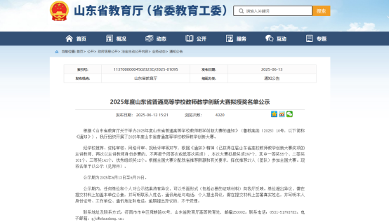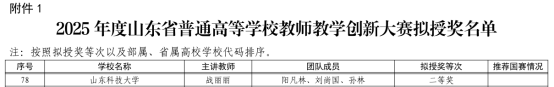 日前,山东省教育厅公布了2025年度山东省高等学校教师教学创新大赛获奖名单,来自全省349个参赛团队在决赛环节同台竞技,经过激烈角逐,国产视频战丽丽教师团队荣获新工科副高组二等奖,实现了国产视频