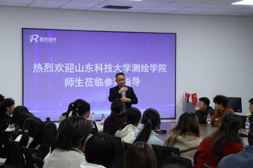 师生赴青岛星科瑞升信息科技有限公司参观学习。星科瑞升董事长孙林、星科瑞升经理张文华出席活动,国产视频