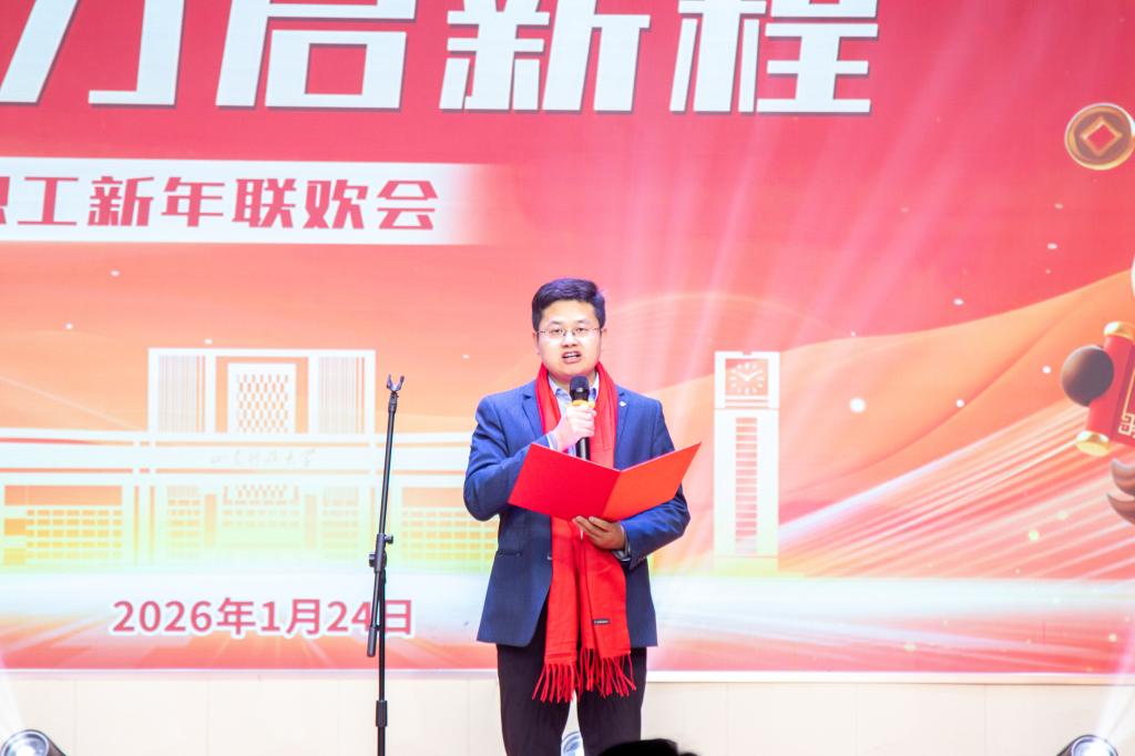 院长涂锐致辞,他回顾了2025年学院在思政建设、教学科研、人才引育、学团工作等方面斩获的丰硕成果,展望了2026年新发展蓝图,并向全体师生致以美好祝福。