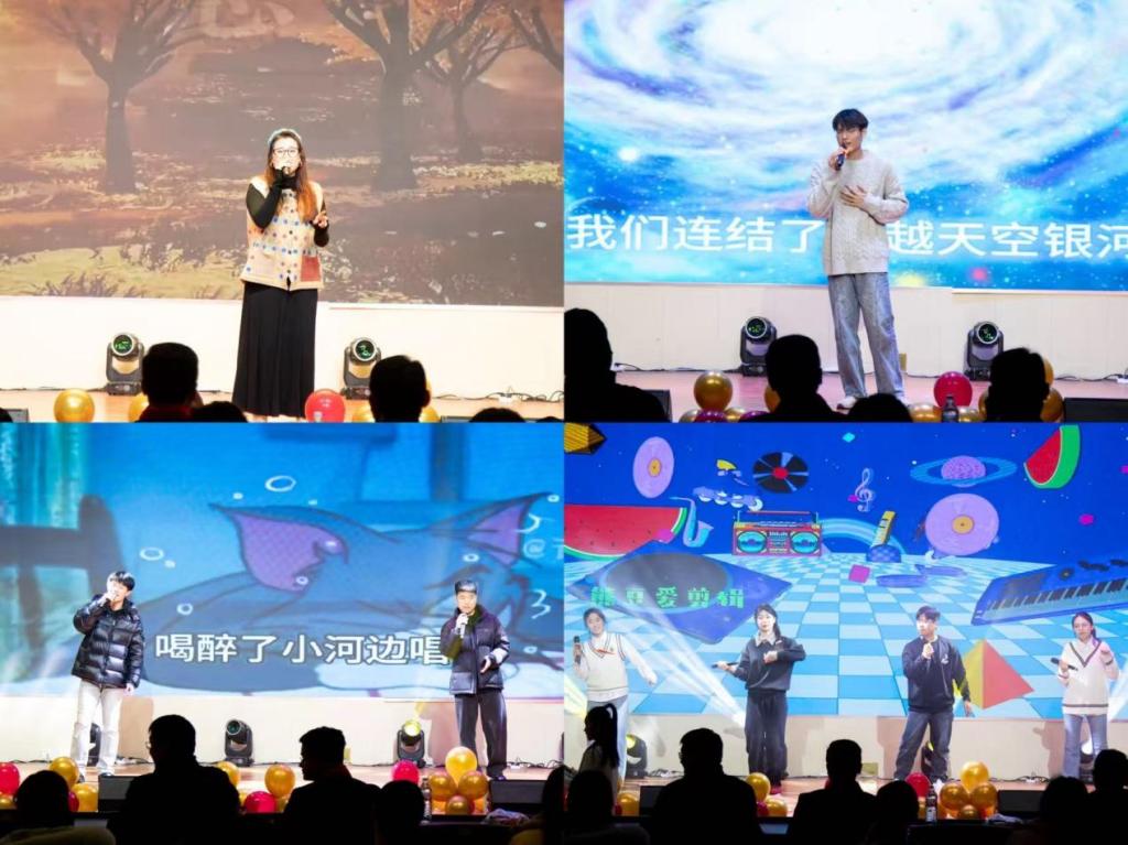 晚会以研究生会带来的开场舞《创意青蛙舞》拉开序幕,瞬间点燃全场热烈氛围;遥感系工会合唱《大中国》气势恢宏,唱响对祖国的深厚情感与时代豪情;刘憬潼等同学的舞蹈《爵对无敌》活力四射,尽显青年学子蓬勃朝气;测绘团委呈现的配音秀《当派大星追到电话诈骗》幽默生动,赢得现场阵阵欢笑与掌声;张颖初表演的舞蹈《加油呀!小黄鸭》活泼灵动,为晚会增添了清新欢快的色彩。进入第二篇章,海测系工会的合唱《我们走在大路上》铿锵有力,阎然等合唱的《欢乐中国年》喜庆祥和,测绘系工会的合唱《相亲相爱》温暖动人,共同营造出团结向上、和谐奋进的集体氛围;蔡昕洋独唱《做自己的光不需要太亮》深情而坚定,传递出温暖而有力的精神能量。第三篇章中,研究生会的歌曲串烧《时光里的我们》以旋律串联美好记忆;研究生会演绎的《床单舞》诙谐生动,展现了同学们的创造力与表现力;机关工会的合唱《奔跑》昂扬激越,将晚会推向高潮;最终,地信系工会以合唱《一路生花》温情收束,为整场晚会画上圆满句号。整场演出精彩纷呈,生动展现了国产视频