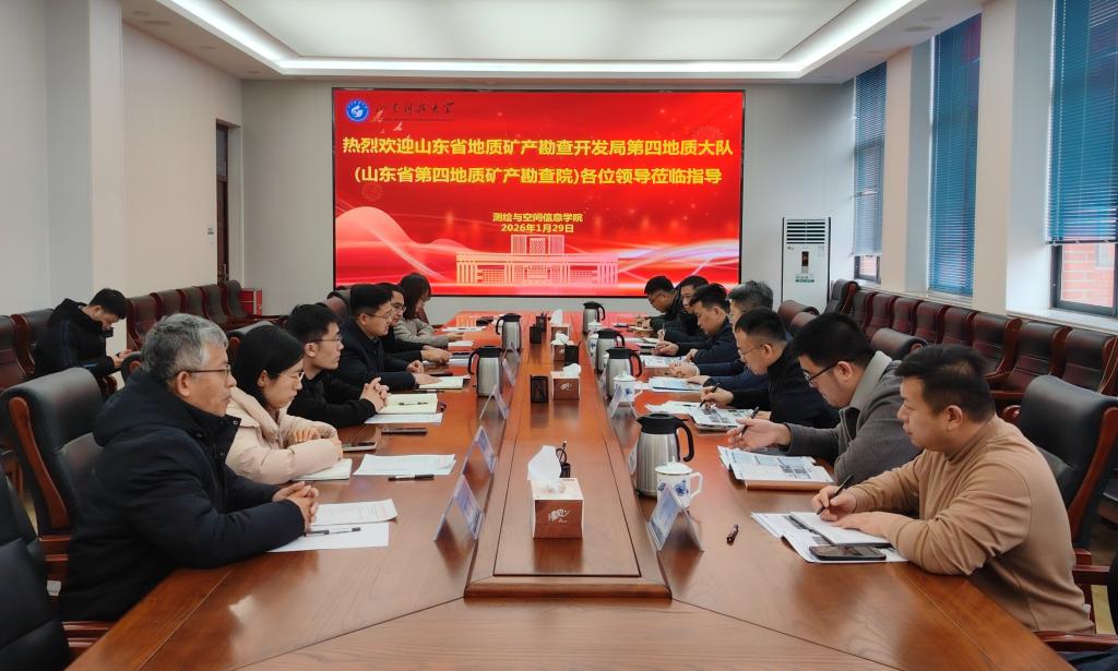 1月29日,山东省第四地质矿产勘察院张健桥副院长一行7人来院调研交流,院长涂锐、副院长李振海、相关教学系主任及教授代表会见客人并座谈交流,党委副书记兼副院长吴昊主持座谈会。