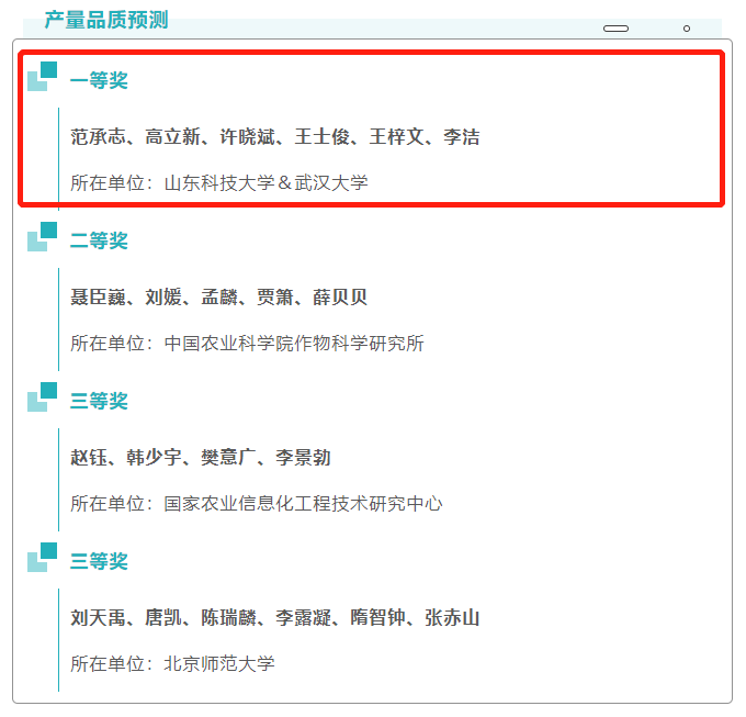 2022“MAP杯”大赛产量品质预测组获奖名单