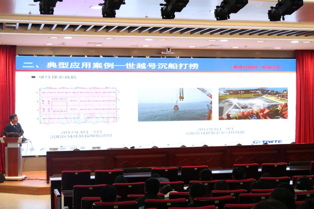 杨主任结合自身30多年的学习工作历程,以“春、夏、秋、冬”的测绘故事的形式,讲述了自己学习和从事测绘的感受和感悟:要紧跟技术创新的脚步、找好发展方向。在具体应用方面,杨主任以海洋应急测绘技术为主题,介绍了他带领的团队在“南海一号”沉船打捞、韩国“世越号”沉船打捞等实际工程案例中所做的工作。重点结合“世越号”沉船打捞这一具有国际影响力的海洋打捞工程,全面讲解了包括水下定位、水下点云拼接等海洋测绘技术在沉船打捞过程中的应用,杨主任自豪的告诉大家,该案例的成功完成,也标志着我国海洋打捞技术跃居世界前列。