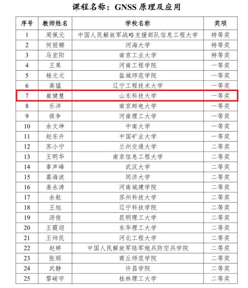 教师教学水平和青年教师素质能力,其中多人次在包括全国高等学校测绘类专业青年教师讲课竞赛、全国高校GIS青年教师讲课竞赛等教学比赛中获特等奖、一等奖等奖项。