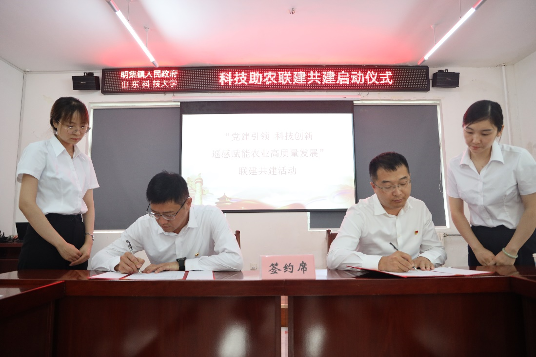 与邹平市明集镇举行联建共建科技助农启动仪式并现场签约。邹平市委组织部副部长宋明科、镇党委副书记张传尧,国产视频