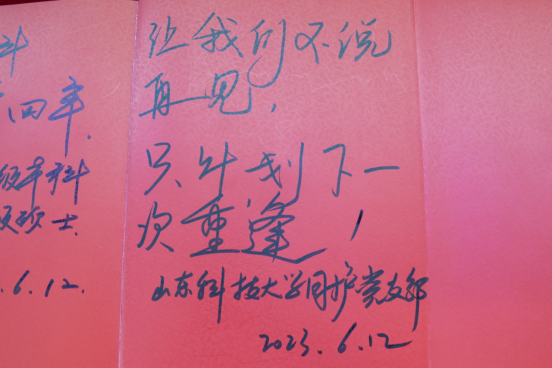 度过的宝贵时光,并为学弟学妹们送去真挚祝福。“山科大是我们快乐成长的地方,国旗护卫队是我们青春的摇篮、奋斗的起点。在这里,我明白了目标、坚持和友情的重要性,都将成为我人生中最难忘的回忆。”毕业生党员陈雪说。