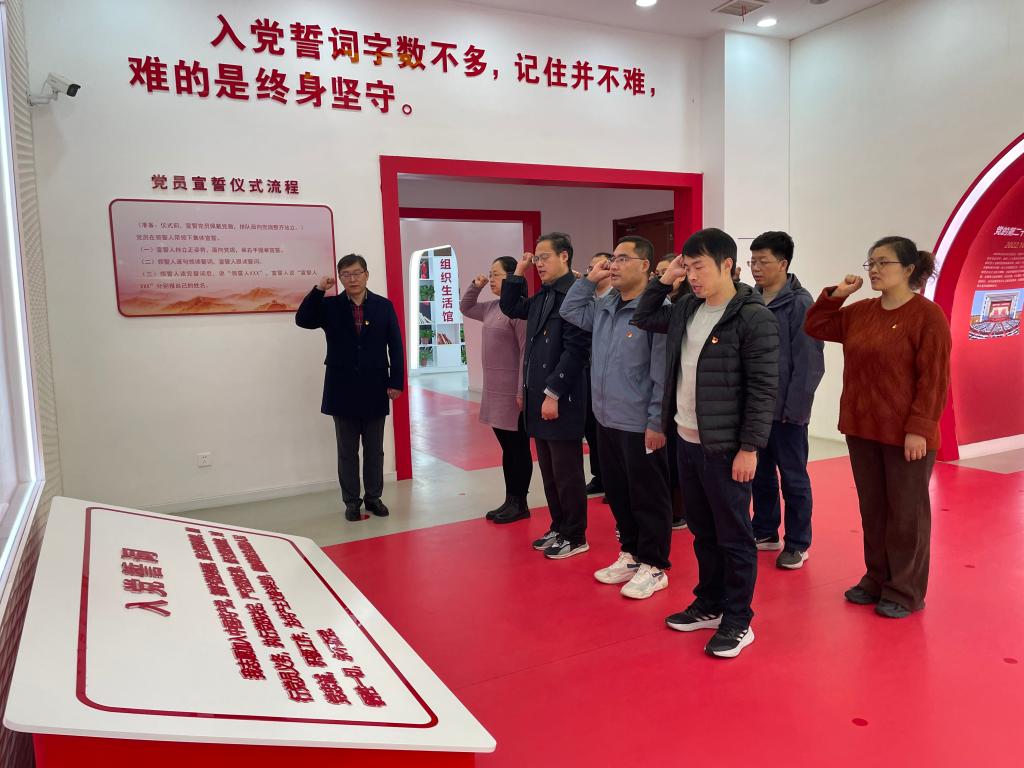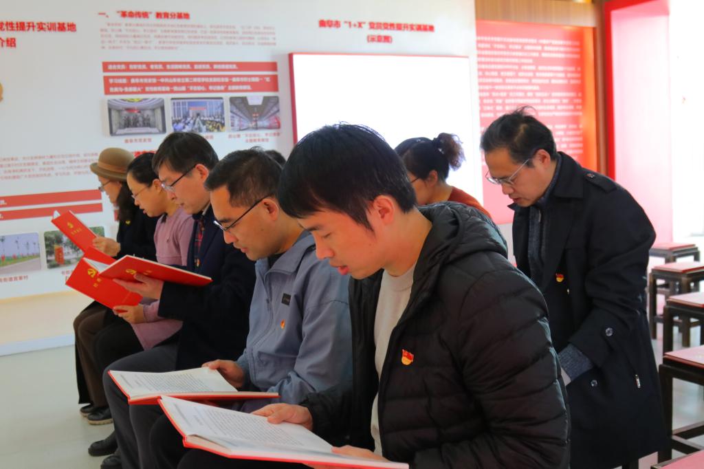 在曲阜市党员党性提升实训基地,跟随工作人员在“正心室”里朗读红色经典《我将无我,不负人民》,重温了习近平总书记的重要讲话,沉浸式地体验了红色经典篇目;在“初心隧道”中认真听取回顾中国共产党成立的历史背景,感受老一辈共产党人为追求真理不懈奋斗的激情岁月;秦昌盛带领全体党员重温入党誓词,坚定初心使命;在学习研讨室,集中观看专题片《初心之问》;在“初心学堂”中,聆听生动党课《理想信念是共产党人精神之“钙”》,在时代变迁信仰永恒的洗礼中补足精神之钙。