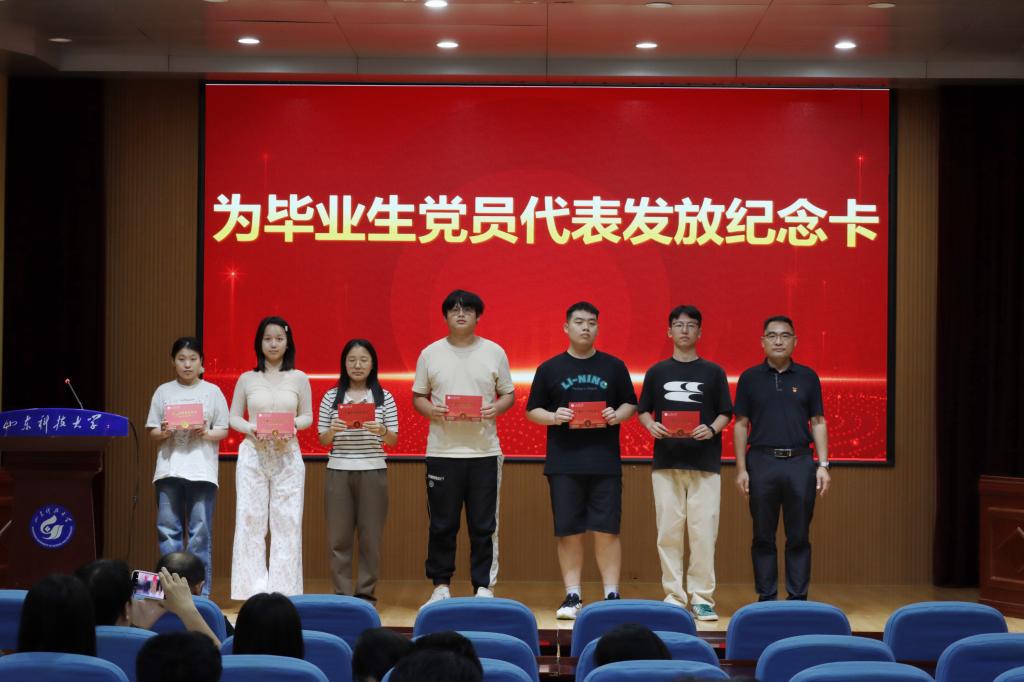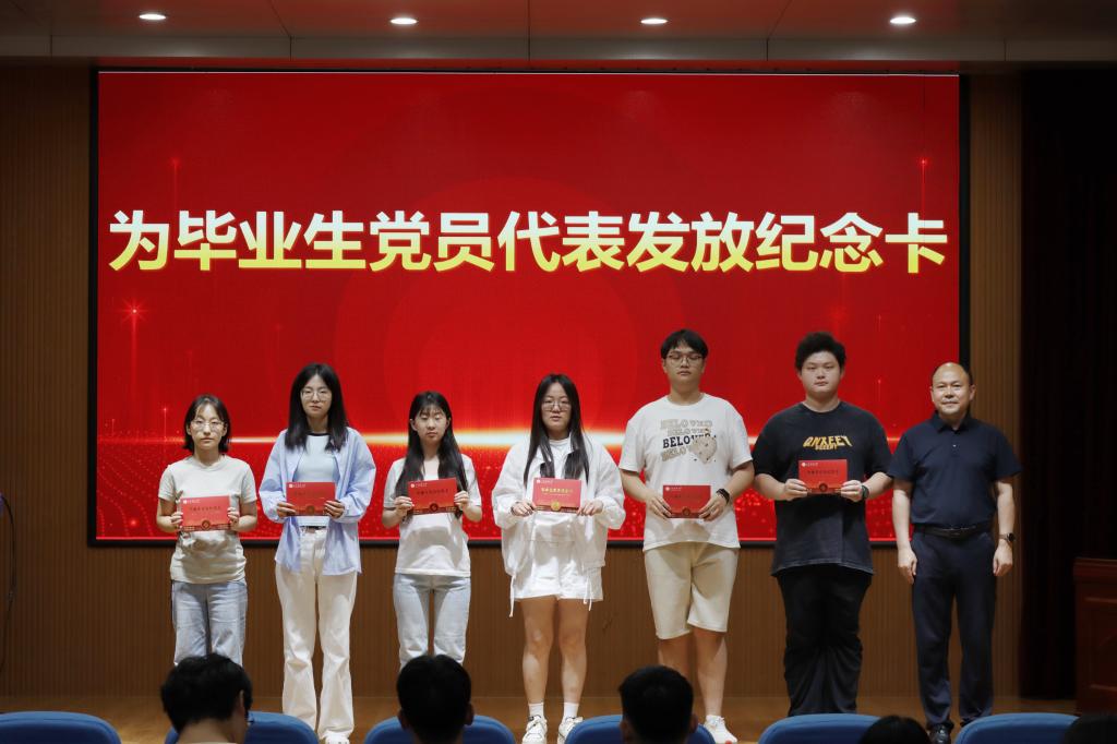 党委书记范俊峰、党委副书记吴昊向毕业生党员代表发放毕业生党员纪念卡,希望同学们能够在信中汲取力量,获取能量,带着科大人的信仰,走向新的人生阶段,开启新的人生篇章。