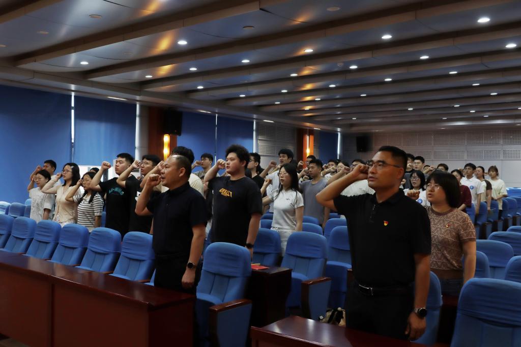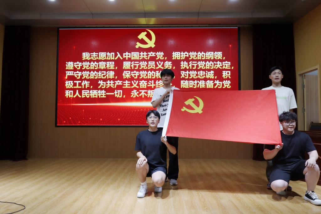 毕业生党员代表潘泽旭带领大家重温入党誓词,党员同志面向党旗庄严宣誓,在铮铮誓言中重温入党初心,坚定理想信念,牢记职责使命。在宣誓中,毕业生党员牢记自己的承诺,勿忘并践行自己作为党员的责任和义务。同时,牢记共产党员需发挥先锋模范作用,永葆共产党员的先进性。