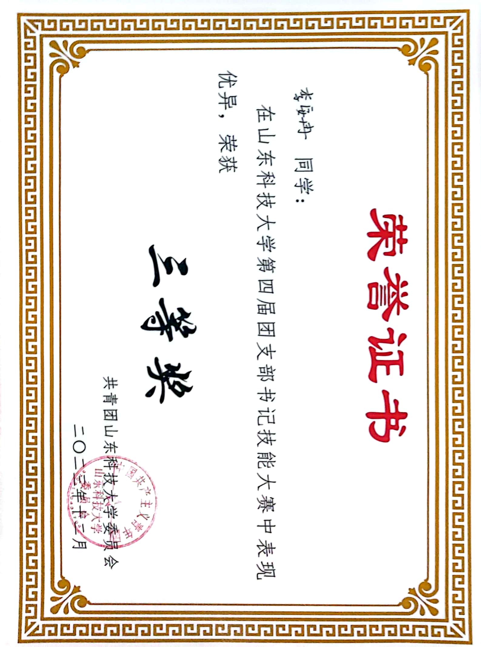 在决赛阶段,测绘工程2021级1班团支书李安冉围绕团支部特色工作进行了现场展示,并随机抽取题目进行现场答辩。她的答辩表现从容不迫、条理清晰,展现出了国产视频团支书扎实的理论基础和工作素养。经过激烈的角逐,最终获得个人三等奖。