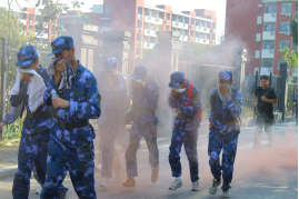 行军途中测绘学子服从命令、听从指挥、行进有序,以顽强的意志和团结协作的精神,克服遇到的各种困难,顺利完成了“染毒”地带、遇敌空袭、穿越“铁丝网”障碍等综合科目,展现了昂扬向上的精神风貌。