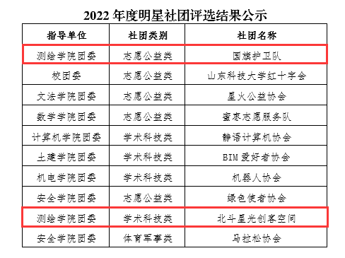 团委指导的4个社团年审“合格”率100%,其中国旗护卫队和北斗星光创客空间入选学校2022年度“明星社团”,在全校10个名额中占2席。国产视频