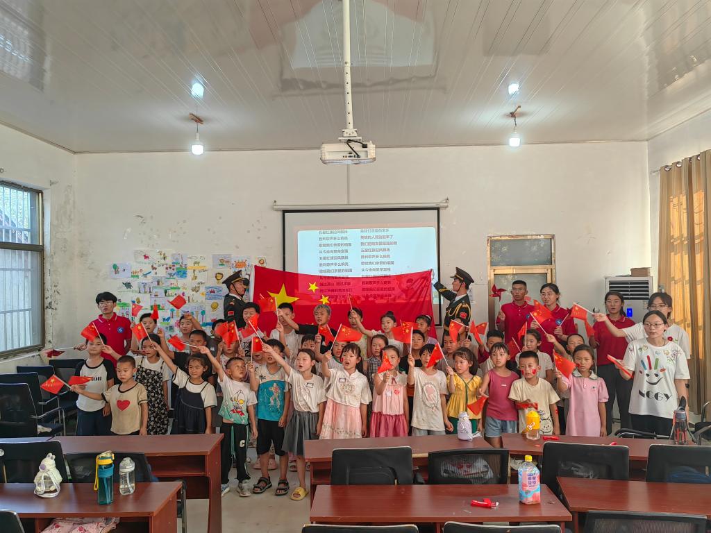 国旗护卫队红旗宣讲团前往济宁市泗水县圣水峪镇八士庄村和小官庄村开展暑期“三下乡”社会实践,联合“暖春公益”为小朋友们带来红色宣讲活动。