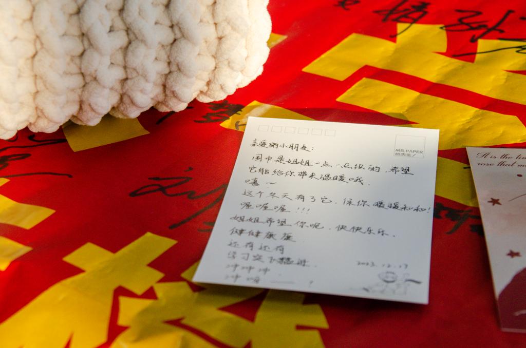 活动中,有许多同学在准备围巾的同时也给孩子们准备了铅笔、书和本子各类的小礼物,希望孩子们能够有一个温暖幸福的冬天。本次活动旨在实现参与者与孩子们之间一次双向的温暖传达,呼吁大学生志愿者们奉献爱心,通过实际行动去践行志愿者精神。(通讯员:刘默、马昊龙)