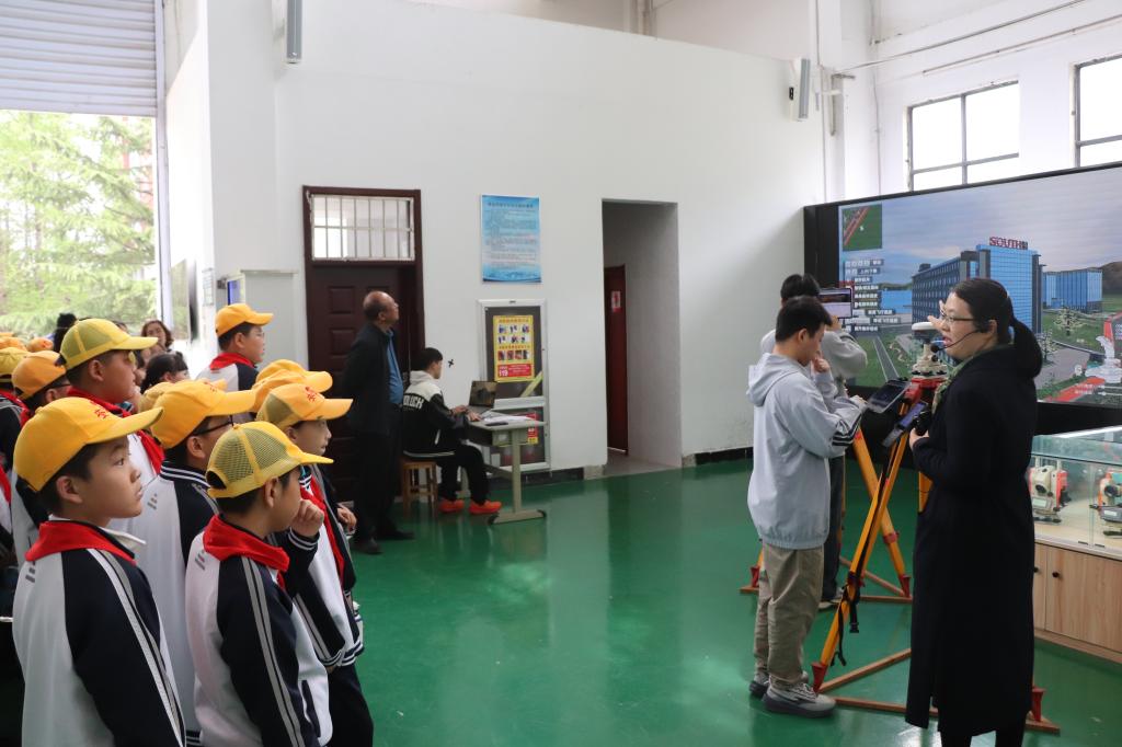 随后,实验中心主任刘凤英带领同学们前往标准化测量实验教学场地,详细讲解强制对中观测墩、测绘文化彩绘、国家控制点等专业设施的功能的同时,介绍了测绘文化的丰富内涵,并亲自指导同学们亲手操作全站仪,体验测距、测角的基本流程,让抽象的测绘知识变得可触可感,进一步激发了大家对科学探索的兴趣。
