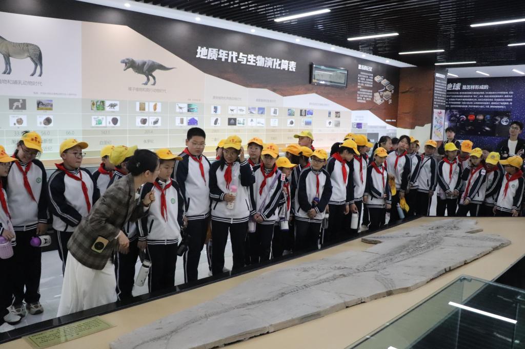 副院长刘尚国、教师陈允芳、实验中心主任刘凤英,地球科学馆讲解员、图书馆讲解员出席活动,学生志愿者全程参与,陪伴84名小学生开启一场兼具科普性与趣味性的校园探秘之旅。