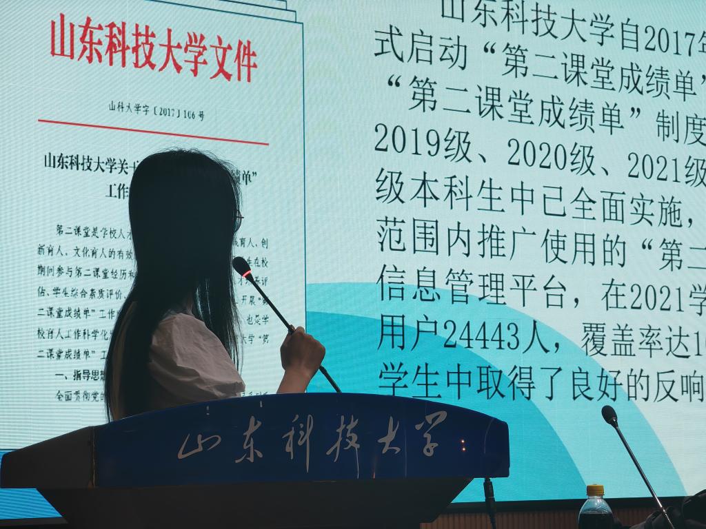 邀请学校“第二课堂成绩单”负责人,面向全体本科生开展“第二课堂成绩单”专题报告,对“第二课堂成绩单”制度的课程设置、学时要求以及团队管理等方面做了简要介绍,为新生讲解了手机端与网页版的账号登陆、活动发起、签到签退设置等操作步骤;团委辅导员葛佳裕为新生进行了团员发展讲解,他从团支部的构成与建设、团员的教育与管理出发,引领新生了解团支部的概念,养成班团意识。
