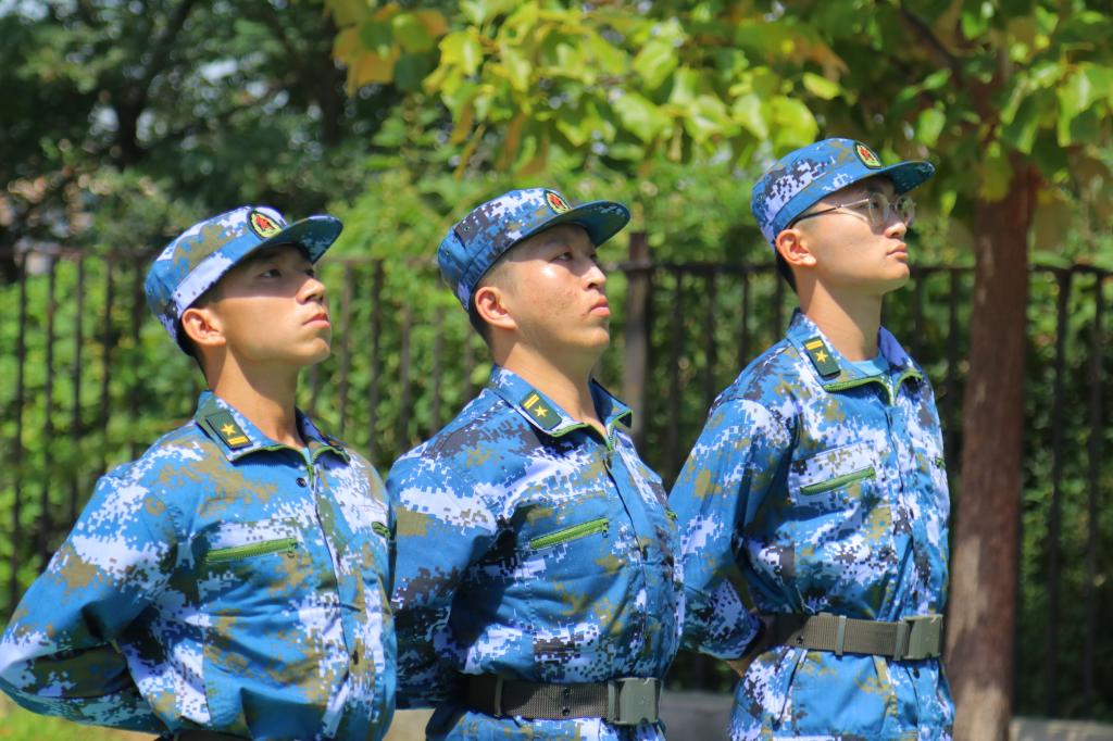 训练场上," 挺胸、抬头、收腹、目视前方 ...…" 同学们摆臂整齐、步调一致,双手紧贴裤线,同学们保持标准军姿,站在阳光下挺直腰杆是学生们最美的样子。