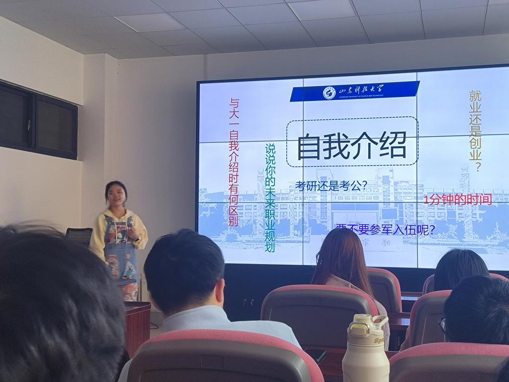 随后,全班同学结合大学期间的发展变化、未来发展规划等方面逐一进行了自我介绍,分享了大学期间的收获和成长,以及个人存在的不足,并对大三大四的大学生生活进行规划,树立了短期职业生涯规划目标。班长司秉奇准备了职业规划的相关材料,向大家介绍了有关考研、就业、考公考编、入伍和其他职业相关的信息和知识,为大家整理了一些职业发展规划的资料和网站,方便同学们做好职业生涯规划。