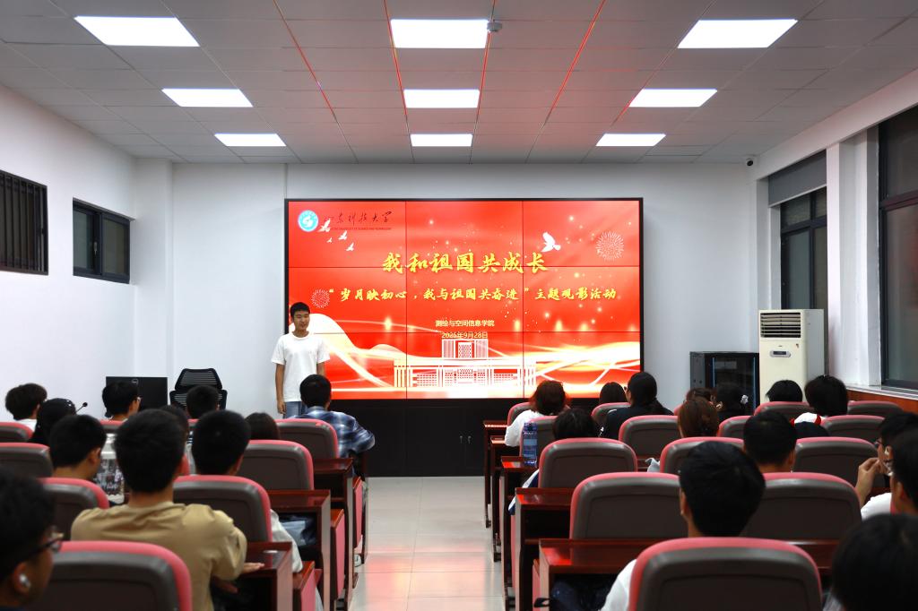 学生会主席张子超介绍了本次活动的背景,将宏大的“家国情怀”与细腻的“亲情牵挂”紧密联结,为整场活动奠定了温暖的基调。随后,同学们共同观看了影片《我和我的祖国》。从开国大典的升旗仪式到香港回归的历史时刻,再到神舟返回舱的成功着陆,一个个关乎国家与个人命运交织的经典片段,让在场学子深刻体会到“家国相依”的深厚内涵与时代分量。放映结束后,同学们手持鲜艳的小国旗,在镜头前留下了一张张“与祖国同框”的珍贵影像,用青春的笑颜致敬伟大时代。