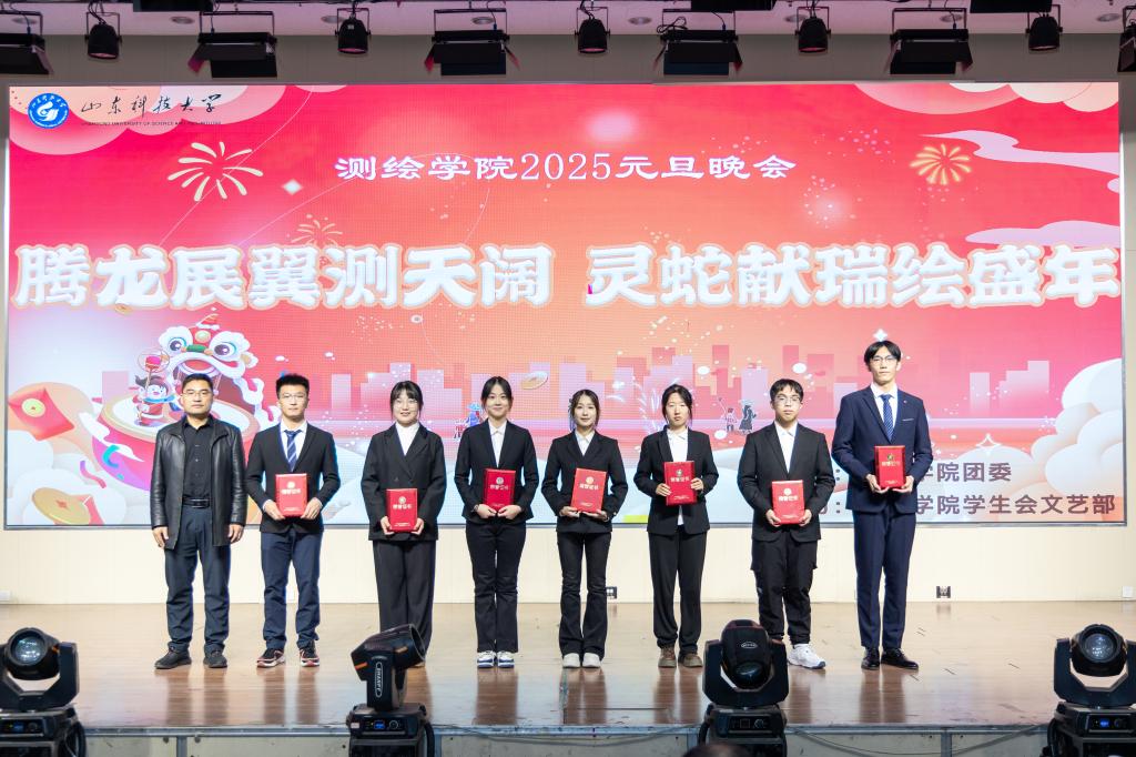 于12月24日晚在大学生活动中心举办“腾龙展翼测天阔,灵蛇献瑞绘盛年”2025年元旦晚会。地信24-2班联系领导干部、纪委综合处副处长李磊,国产视频