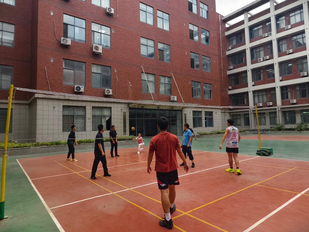 排球赛在J6天井排球场举行。师生混合组队,网前拦网、奋力扑救、巧妙吊球等精彩场面层出不穷。一次次精彩的攻防转换,将比赛推向一个又一个高潮,也让师生们在团队协作中增进了彼此的情谊。师生们卸下身份标签,为每一次得分击掌,为每一个失误彼此鼓励,“加油!稳住!”的呼喊声此起彼伏,浓浓的师生情谊在每一次跳跃与击掌中无声流淌,成为赛场上最动人的风景。