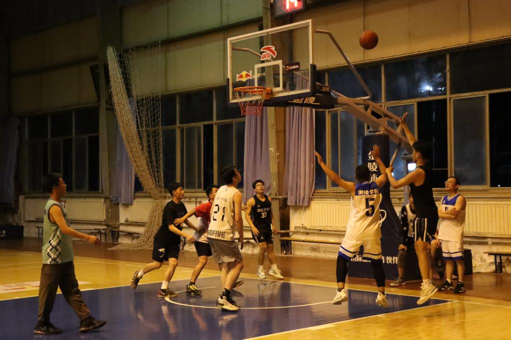 篮球赛在校体育馆举行。比赛刚开始,教师队伍凭借丰富的经验与默契配合,迅速占据主动,巧妙传球、精准投篮,赢得阵阵喝彩;毕业生们则凭借年轻的活力与冲劲,积极防守、快速反击,不断缩小比分差距。双方你来我往,激烈对抗,每一次精彩的进攻、每一次顽强的防守,都展现出师生对胜利的渴望与对篮球运动的热爱。场边,观众们热情高涨,欢呼声、呐喊声此起彼伏,气氛热烈非凡。