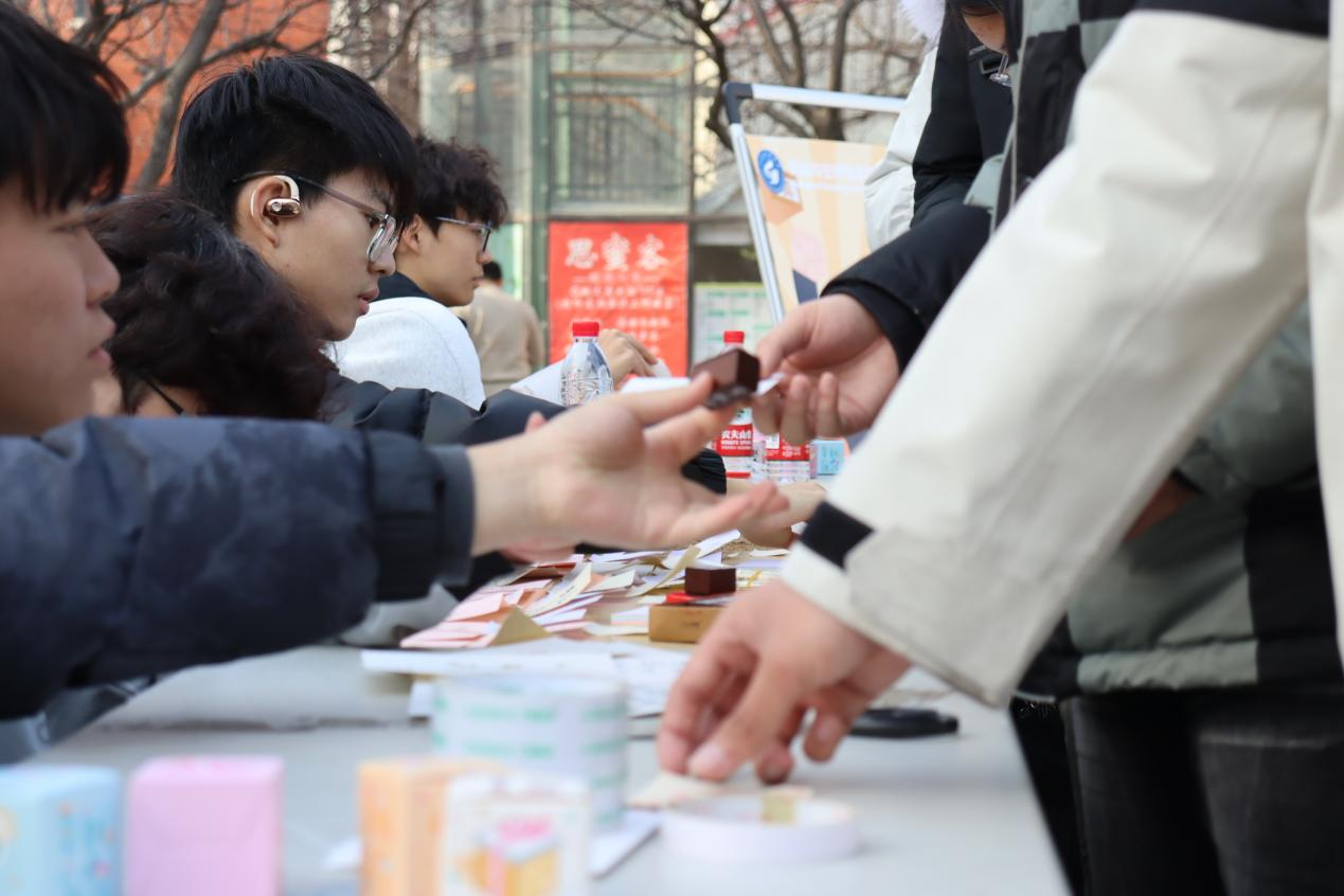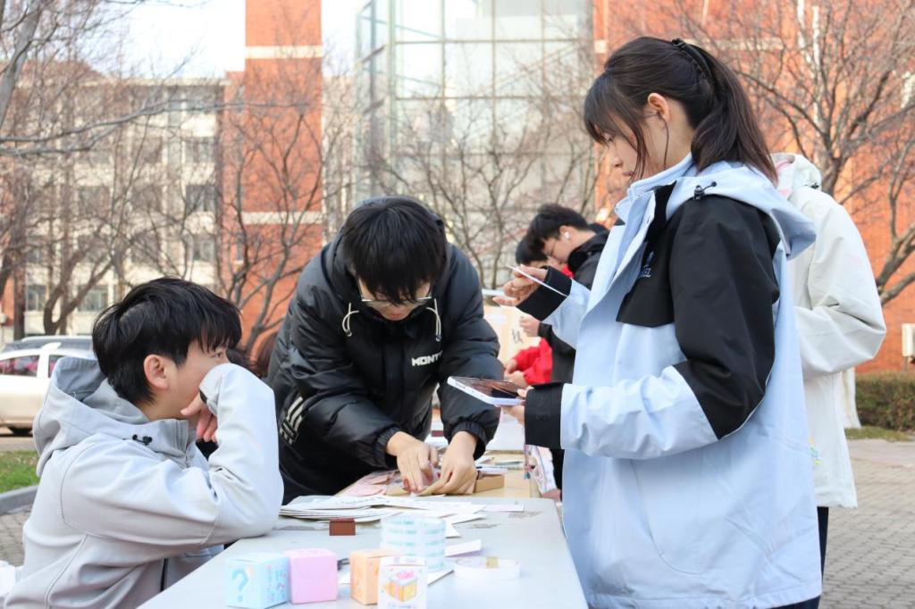 活动现场,师生踊跃参与挑战。盲盒环节中,大家围绕网络诈骗、实习侵权等场景口述应对思路,工作人员同步讲解维权技巧;创意拼贴环节,参与者亲手制作法治标语,优秀作品张贴上墙,成为现场亮点;连连看与行为判定赛则通过趣味比拼,帮助大家快速掌握权益匹配与侵权判断原则。各环节分工明确,互动积极,师生在轻松氛围中明晰了权益边界,掌握了实用方法。