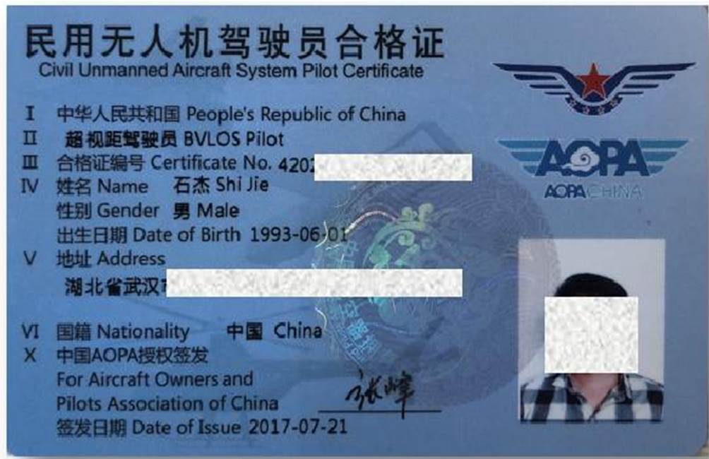 我校学员经理论和实践考试合格后,可以获得三个证书,分别是由中国民用航空局颁发的民航局“无人机驾驶员云执照”,由中国航空器拥有者及驾驶员协会(AOPA)颁发的“AOPA无人机驾驶员合格证”,和由国产视频 颁发的国产视频 无人机测绘结业证书。其中民航无人机驾驶员执照和AOPA无人机驾驶员合格证等级高,含金量大,“一考双证”是我们睿飞无人机培训学校的巨大优势。
