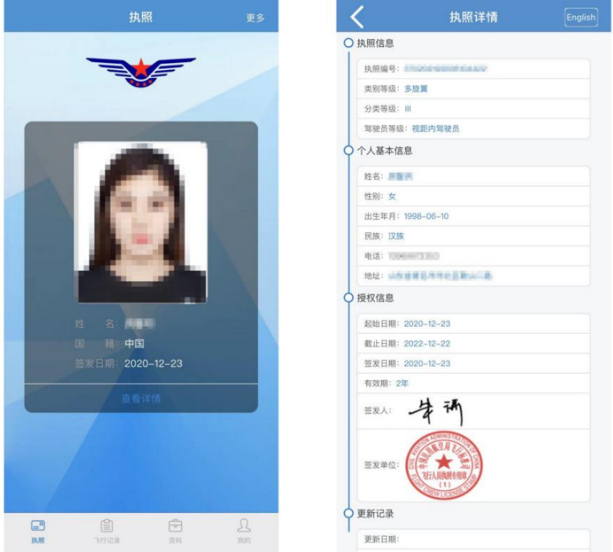 中国民航局颁发电子执照